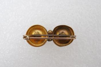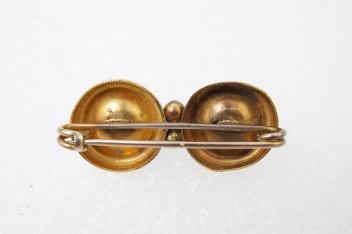 Lot 2925 , A Victorian ruby and gold double target brooch, late 19th century and later, composed of two roundels set with circular-cut garnets, with wirework details, length 3.7cm, gross weight approximately 3.5 grams