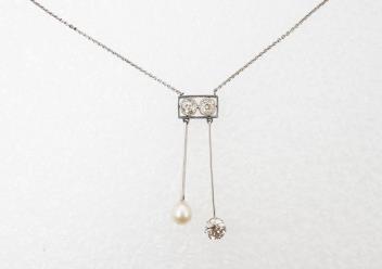 Lot 710 , An Art Deco pearl and diamond negligée pendant, 1920s