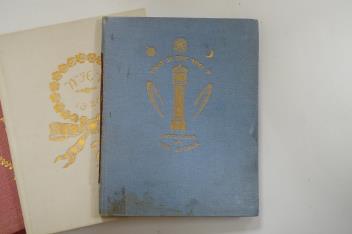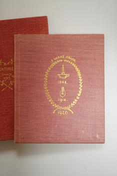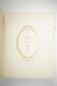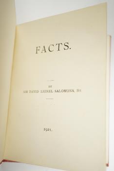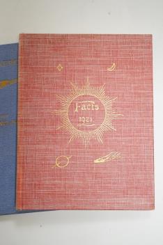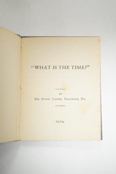 ° Salomons, Sir David Lionel - (New Year Keepsakes, issued to friends), for 1918-22, 1924 and 1926 - Flight by Aeroplane; "What is the Time?"; Why?; Facts; Nature; Reflections; I Wake Again. a few illus. in some; original gilt pictorial cloth, ge., 12mo. Broomhill, near Tunbridge Wells: (privately printed, 1917-25). *the author (1851-1925) inherited the Broomhill Estate (with its art museum); a leading engineer and scientist he became the world's foremost collector of, and authority on, Abraham-Louis Breguet watches. Of these interesting curiosities not the least is that for 1926 (he had died the year before). For that final year the 1912 issue had been re-printed (with an explanatory note); the original text ending with the prescient, unearthly words 'Never wish yourself back to this World, after you have left it'.