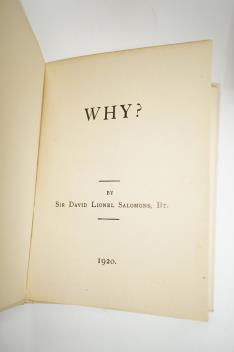 Lot 1345 , Salomons, Sir David Lionel - (New Year Keepsakes, issued to friends), for 1918-22, 1924 and 1926 - Flight by Aeroplane; "What is the Time?"; Why?; Facts; Nature; Reflections; I Wake Again. a few illus. in some; original