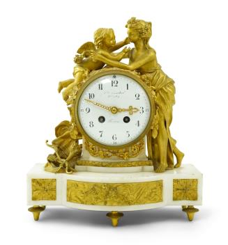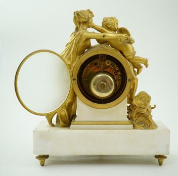 Lot 281 , An early 19th century French figural ormolu and white marble mantel clock