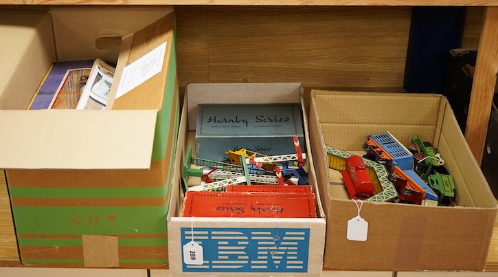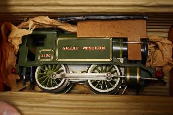 Lot 289 , A collection of Hornby 0 gauge tinplate clockwork railway, including; a boxed No.1 Special GWR 0-4-0T locomotive, 5500, complete with original inner card packing pieces, etc., together with a boxed Dinky Toys No.1 Statio