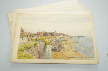 Lot 1706 , Alfred Robert Quinton (1853-1934), Set of six original watercolours for postcard designs, Kent coastal views to include: On the Cliffs, Birchington, Walmer Castle, Promenade and Cliffs, Cliftonville and The Harbour, Whit