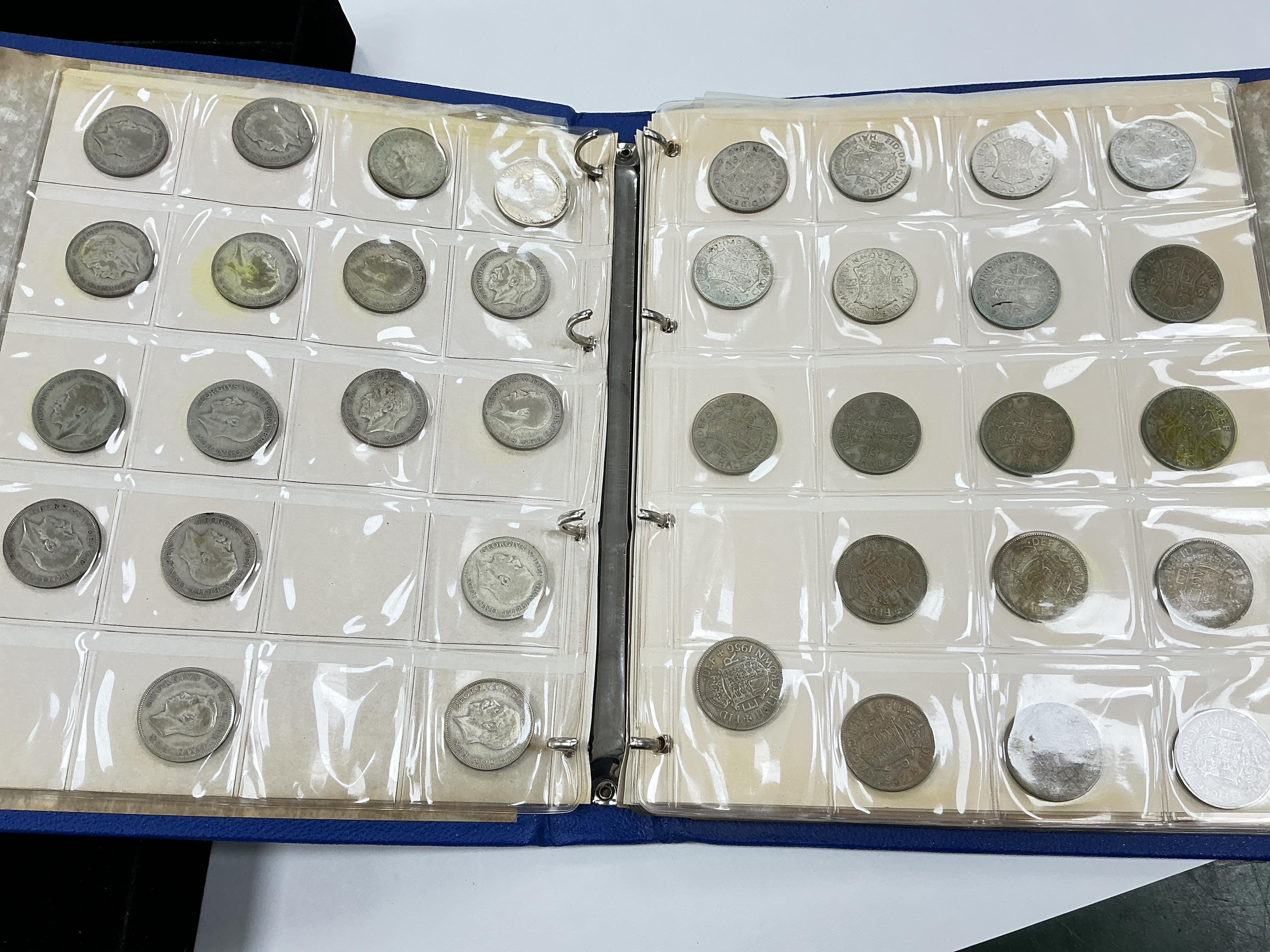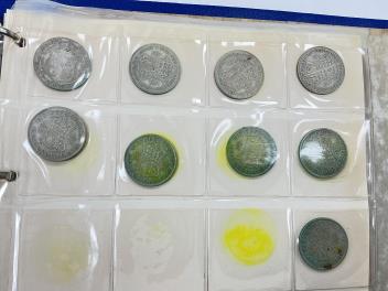 Lot 2024 , British coins, George V to Elizabeth II including, halfcrown, 1915 and thirty six halfcrowns, 1921-1946, Bailiwick of Jersey five shillings, Bailiwick of Guernsey 10 shillings, etc. in a folder