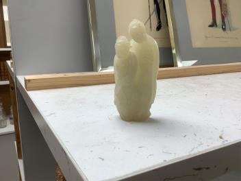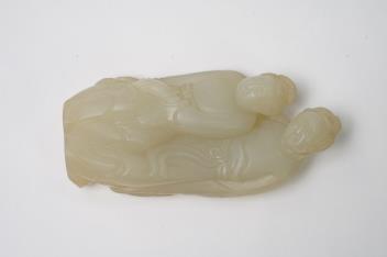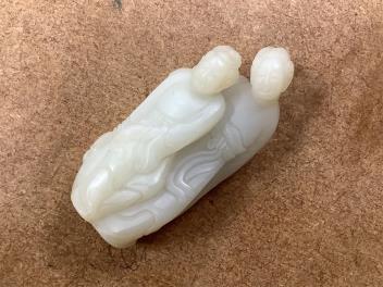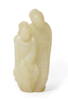 Lot 1594 , A Chinese simulated jade group of two sisters, 8.5cm