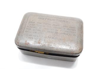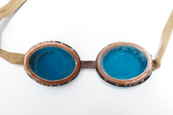 Two pairs of WW2 desert goggles, blue tinted lenses, one with original tin box
