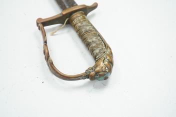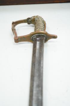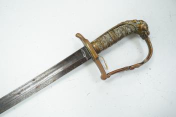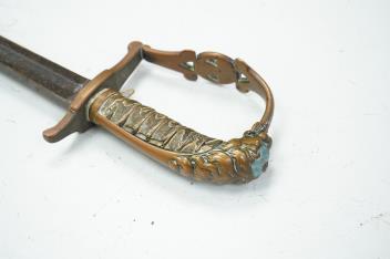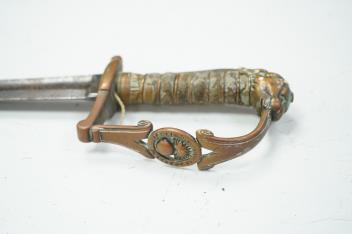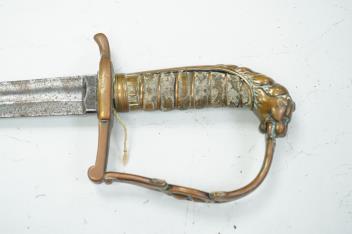 Lot 1272 , A scarce regimental NCO’s sword of the Royal Scots Fusiliers with regulation pattern brass hilt with ‘honi soit qui mal y pense’ and flaming grenade in guard