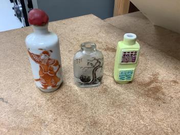 Lot 1485 , A small collection of Chinese snuff bottles, 19th century and later to include reverse glass painted examples and cinnabar lacquered examples, largest 9.5cm high