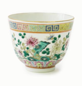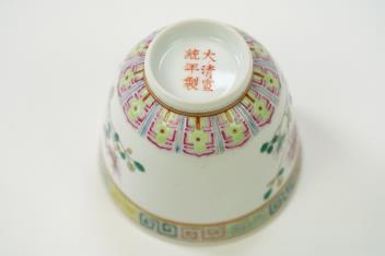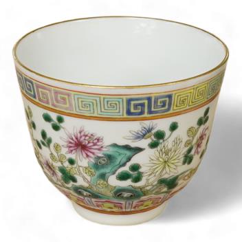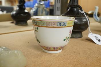 Lot 1595 , A Chinese famille rose cup, Guangxu mark but later, 6.5cm
