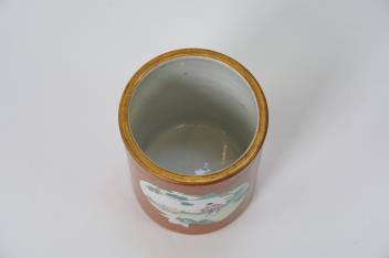 Lot 120 , A Chinese coral ground brushpot, 19th century