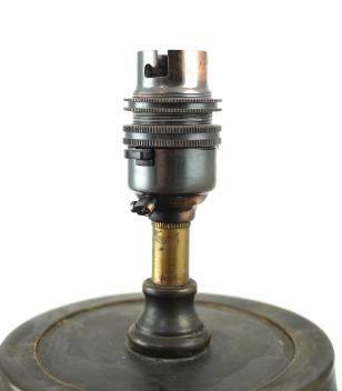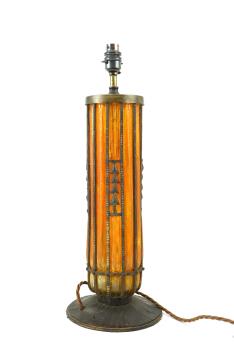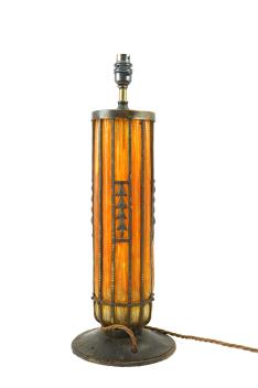 Manner of Daum Frères and Edgar Brandt (French, 1880–1960): A textured glass and cast-iron mounted table lamp, 50cm high (inc. later fittings)