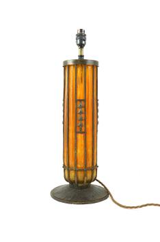 Lot 150 , Manner of Daum Frères and Edgar Brandt (French, 1880–1960): A textured glass and cast-iron mounted table lamp