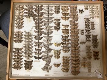 Lot 1287 , A Victorian ten drawer mahogany collector’s cabinet, containing a large selection of taxidermy moths, the contents checked against the UK register, each drawer with glazed cover, with a lockable glazed main door and orig