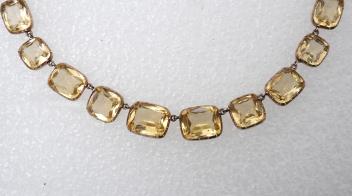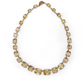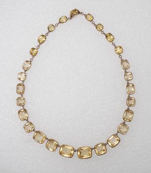 An attractive Victorian paste rivière, mid 19th century, composed of graduated yellow pastes in gold collet settings, length 39cm