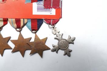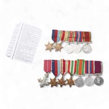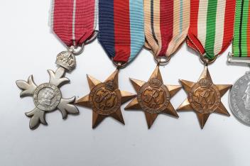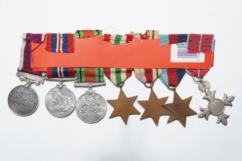 Lot 1341 , Two WWII medal groups, awarded to; S/54414 W.O.CL.1. C.E. Hayball. M.B.E. R.A.S.C., and M20620 J. Goliath, comprising