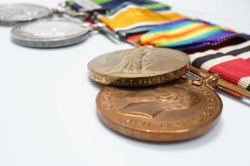 Lot 1342 , Two First World War medal groups awarded to; M2-156554 A.CPL. G.T. Walker. R.A.S.C., and 2418 PTE. W. Colling. Durham Light Infantry