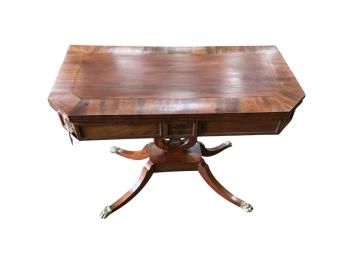 A Regency inlaid mahogany folding card table, width 92cm, depth 46cm, height 73cm