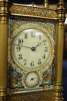 Lot 2470 , An early 20th century champleve enamel repeating carriage clock with subsidiary dial, with key, 19cm high