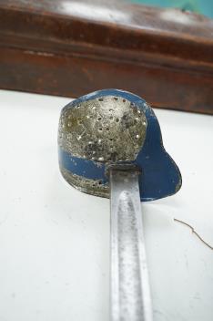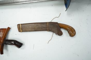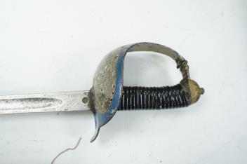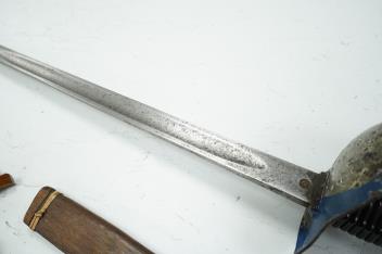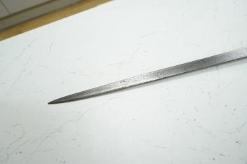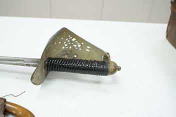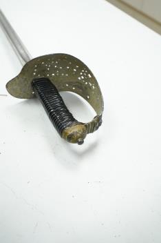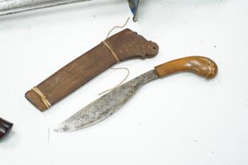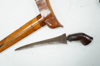 Lot 1281 , An 1897 pattern infantry officer’s sword of the 3rd London Rifle Volunteers, with regulation hilt, the blade in poor condition, together with a small kris and a small knife bade-bade from Malaya, sold together with two v