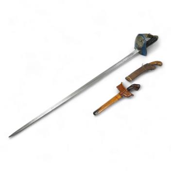 An 1897 pattern infantry officer’s sword of the 3rd London Rifle Volunteers, with regulation hilt, the blade in poor condition, together with a small kris and a small knife bade-bade from Malaya, sold together with two volumes of family history with direct references and notes relating to these weapons