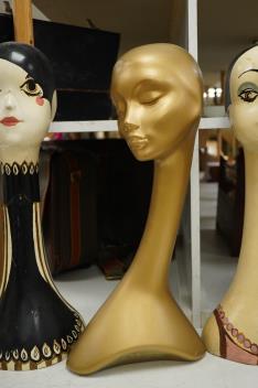 Lot 1459 , Two painted milliner’s hat display stands and two others, tallest 63cm high.