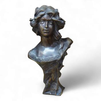 Lot 428 , A French Art Nouveau bronze bust of a maiden, unsigned, 32cm high