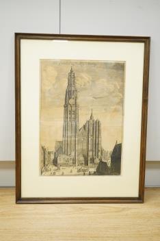 After Wenceslaus Hollar (1607-1677), ‘The Cathedral Church of Antwerp’, etching, 47 x 34cm