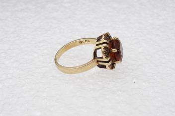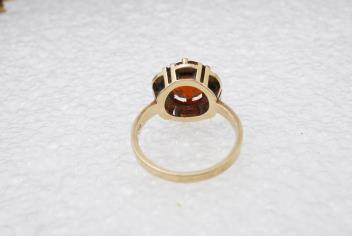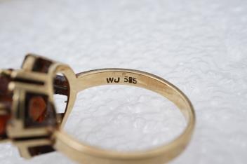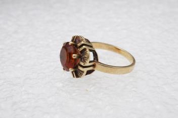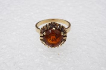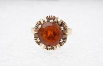 Two brooches and a ring, mid 20th century, comprising: a brooch of floral design, set with circular-cut synthetic gemstones, length 3.7cm, Austrian assay marks for gold, gross weight approximately 6.5 grams; a brooch designed as a flower, set with variously coloured gemstones and citrines, mounted in gold, length 4.5cm, stamped 18K, gross weight 5 grams; and a ring set with a circular-cut citrine, mounted in gold, size M, stamped 585, gross weight approximately 4.5 grams