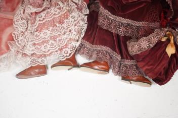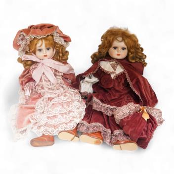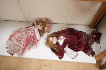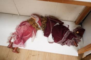 Lot 1397 , Two bisque dolls in matching Victorian clothing, 60cm high