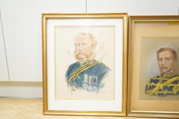 Lot 1369 , Contemporary School, Portrait of a gentleman wearing military dress, oil on board, together with two other military interest pastel portraits, two include Surgeon General W. G. Trusdell, largest 49 x 39cm