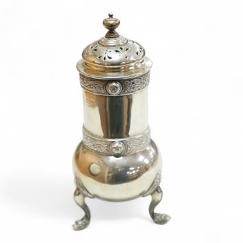 Lot 1837 , A George V Irish silver sugar caster, by West & Son, Dublin, 1914, decorated with Celtic bands, height 16.7cm, 9.9oz.