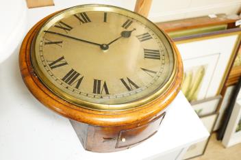 Lot 1495 , A Victorian wall dial clock case, lacking movement, 37cm in diameter