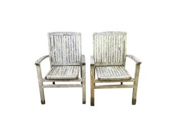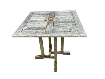 Lot 1106 , A Lindsey weathered teak square garden table, width 79cm, height 73cm and two chairs