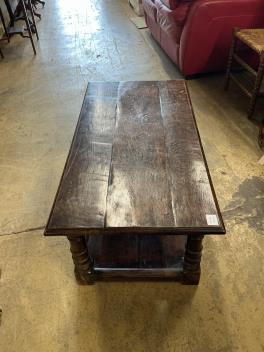 A 17th century style rectangular oak two tier coffee table, width 106c, depth 55cm, height 43cm
