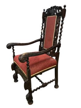 Lot 1232 , A Charles II style carved walnut / beech ‘throne’ chair, width 70cm, depth 70cm, height 136cm