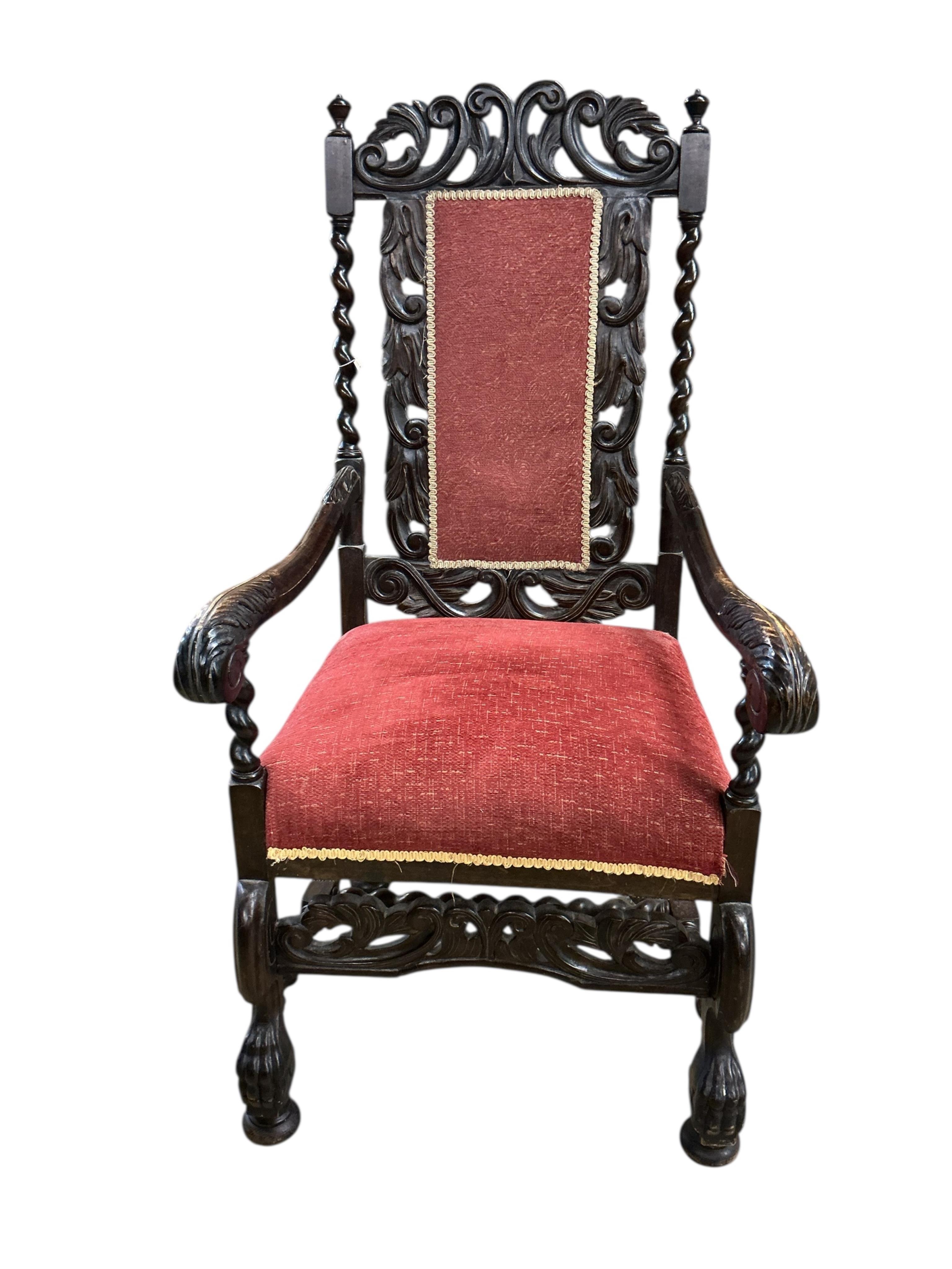 A Charles II style carved walnut / beech ‘throne’ chair, width 70cm, depth 70cm, height 136cm
