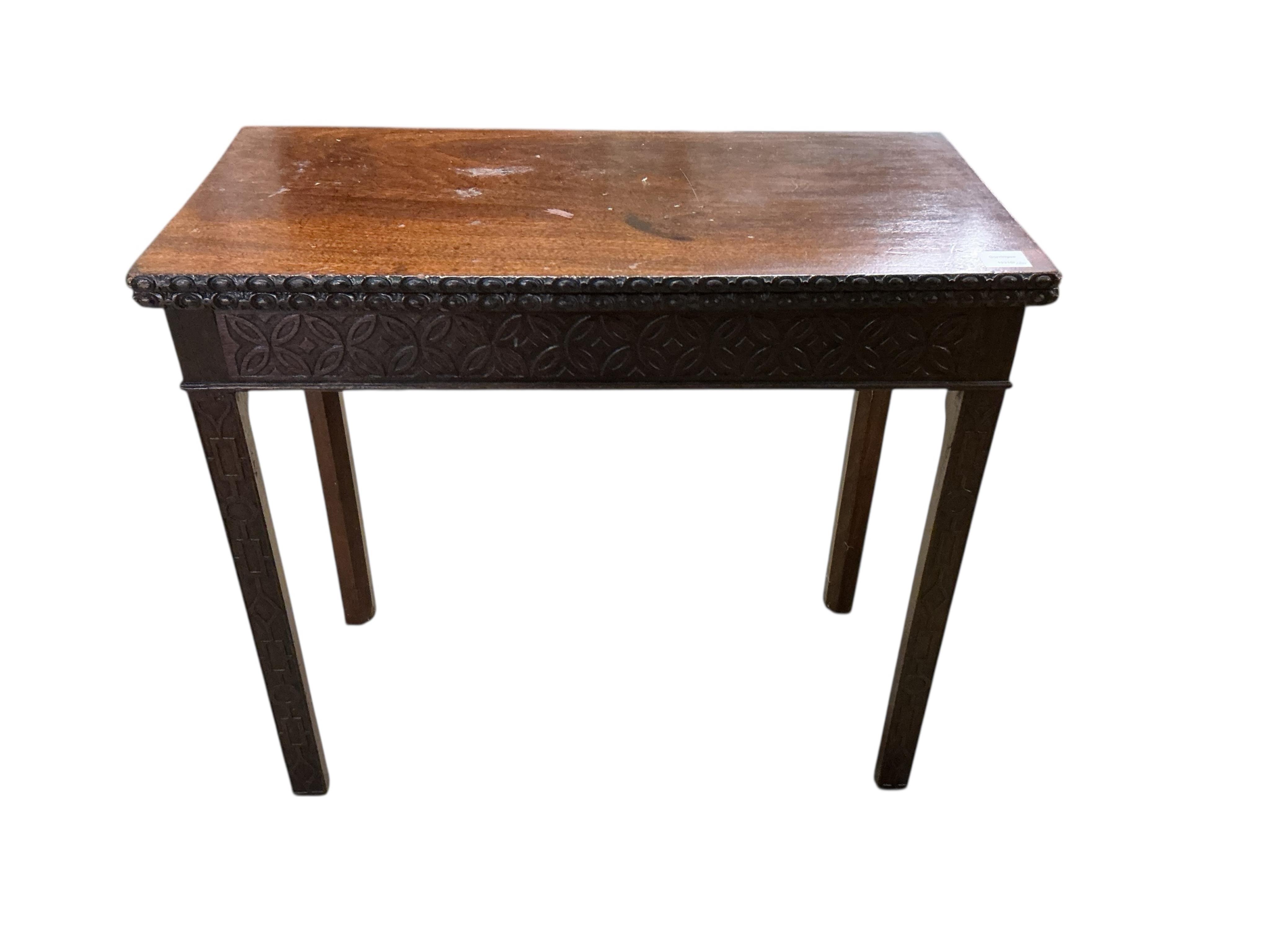 Lot 1270 , A George III and later mahogany card table, width 80cm, depth 39cm, height 73cm