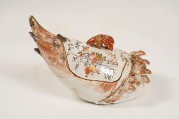 Lot 20 , An unusual Japanese Kutani shell shaped vessel, 19th century