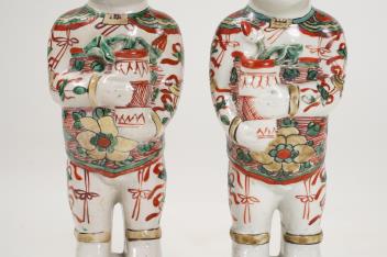 Lot 72 , A pair of Chinese famille verte figures of smiling boys, Kangxi period