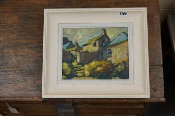 Lot 1769 , Bob Vigg (1932-2001), ‘Newlyn Cottages’, signed, Cornish impasto oil on board, 19 x 24cm