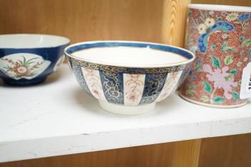 Lot 1508 , 18th century Worcester kakiemon style porcelain comprising a tea caddy, mug and two slops bowls, largest 14cm high
