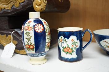 18th century Worcester kakiemon style porcelain comprising a tea caddy, mug and two slops bowls, largest 14cm high