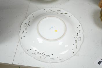 An 18th century Meissen flower painted dish, 24cm in diameter and a 19th-century Meissen moulded dish depicting grapevines
