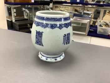 Long, curved crack, clearly visible, as shown; neckrim without damaging enamel unsightly chip, also shown in images.