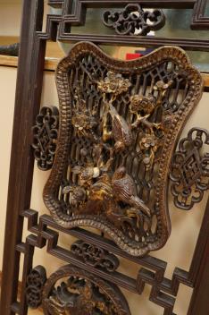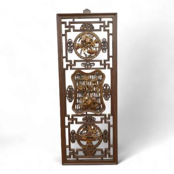 Lot 483 , A 19th century Chinese gilt lacquered wood panel, 128cm high