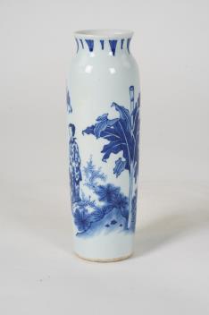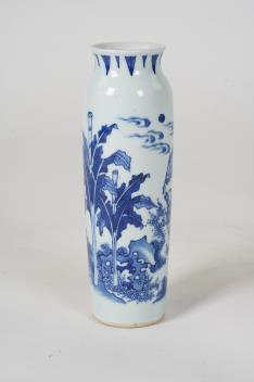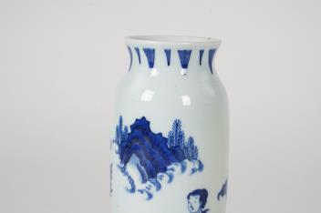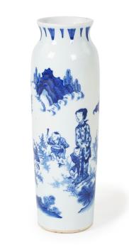 Lot 67 , A small Chinese blue and white ‘figures in garden’ rolwagen vase, possibly Chongzhen period (1627-1644)