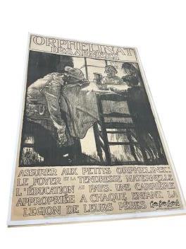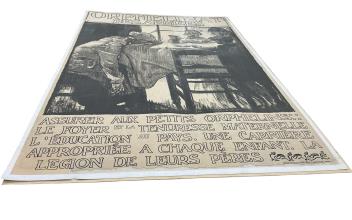 Lot 1792 , After Frank Brangwyn RA RWS RBA (1867-1956), ‘Orphelinat Des Armees’, (Army Orphanage), mounted on light-weight linen. Printed in London by The Avenue Press LTD. "Ensure that orphans have: home and maternal tenderness, e
