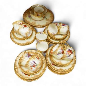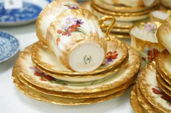 Lot 1510 , A ‘Nautilus’ porcelain floral and gilt decorated tea service, sandwich plates 23cm diameter.
