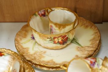 A ‘Nautilus’ porcelain floral and gilt decorated tea service, sandwich plates 23cm diameter.