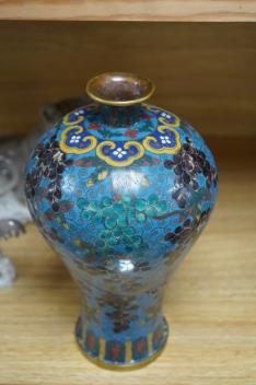 A late 19th / early 20th century Chinese cloisonné enamel 'Squirrel and vine' meiping, 27cm